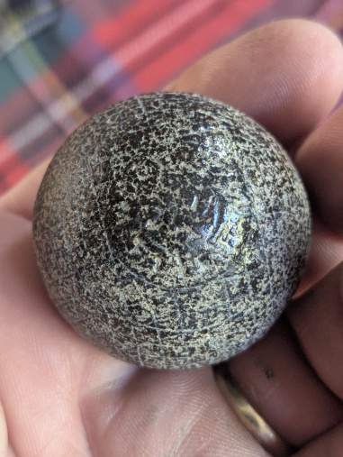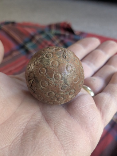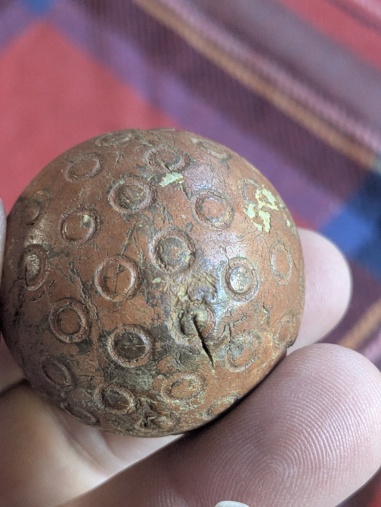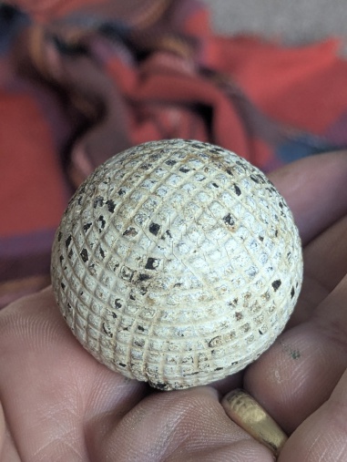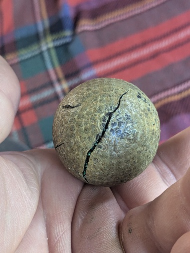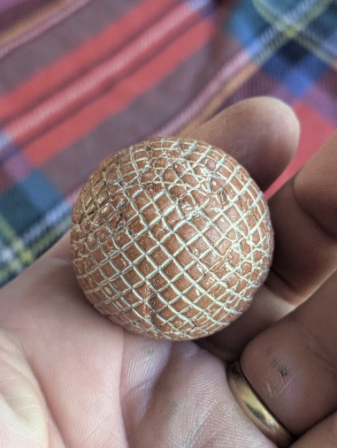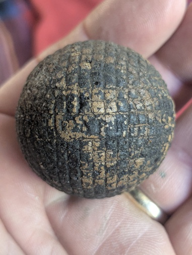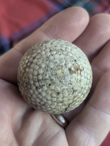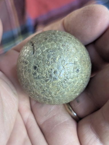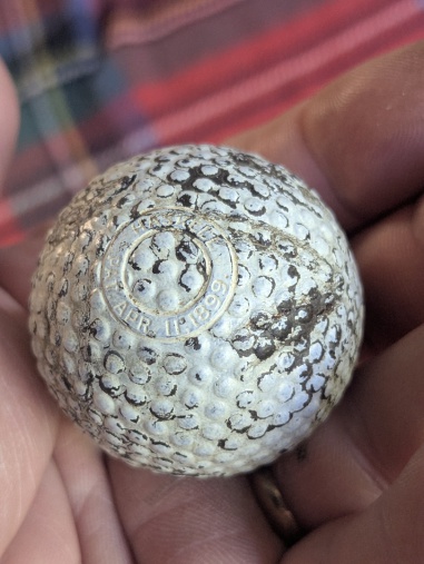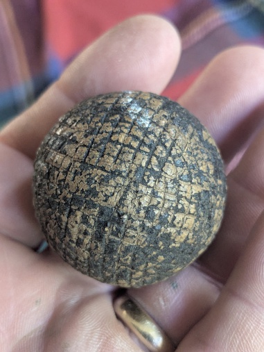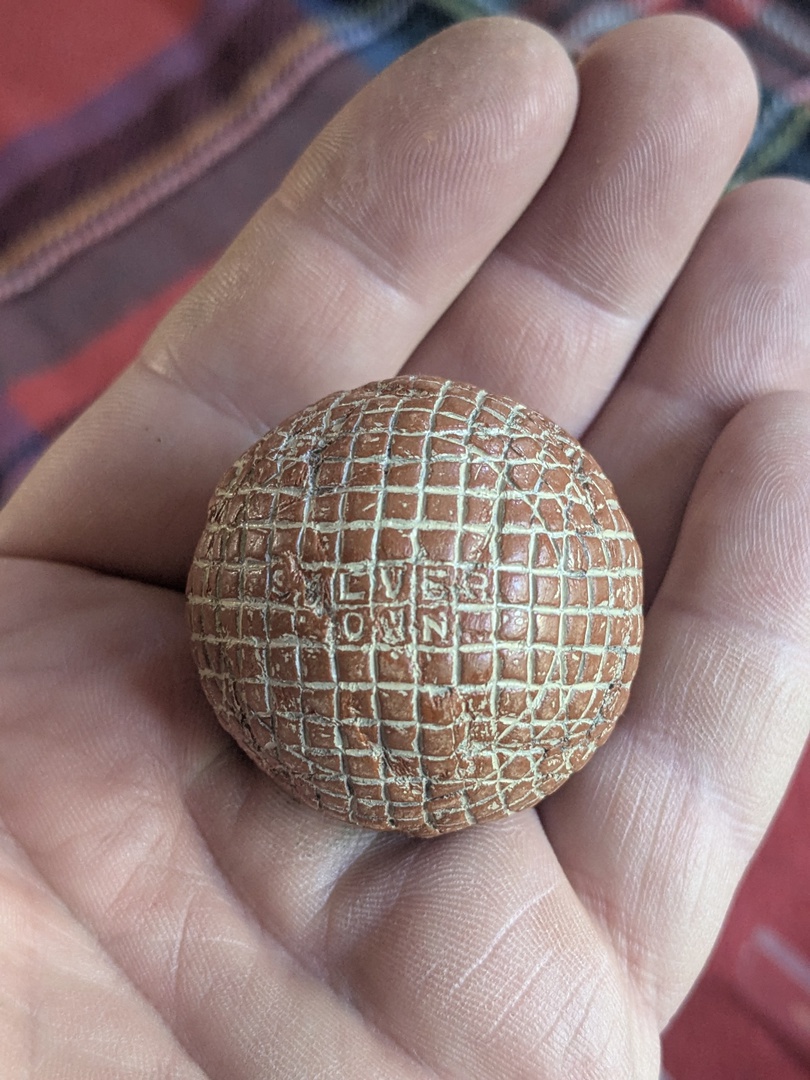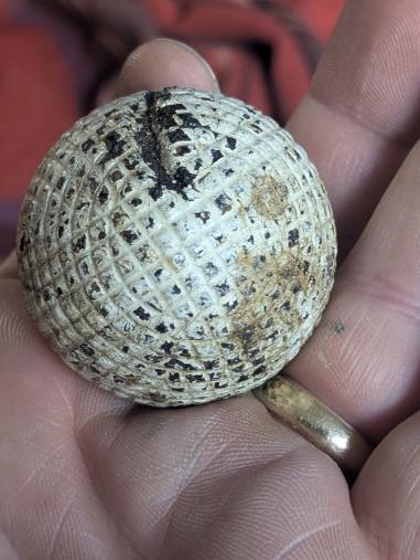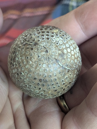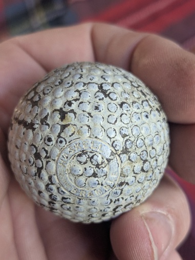 A great example of this scarce type of club. The head started hollow and then is filled with gutta percha. Then the face is riveted on. It also has deep and sharp edged machined grooves. Made by Spalding. They are not rare but finding them in this condition is. Dates about 1910.