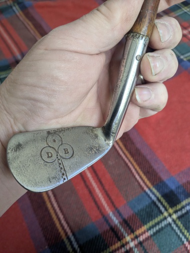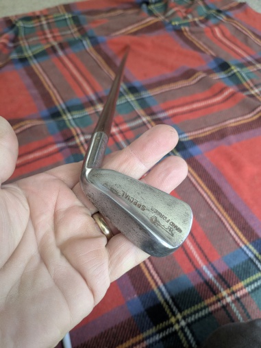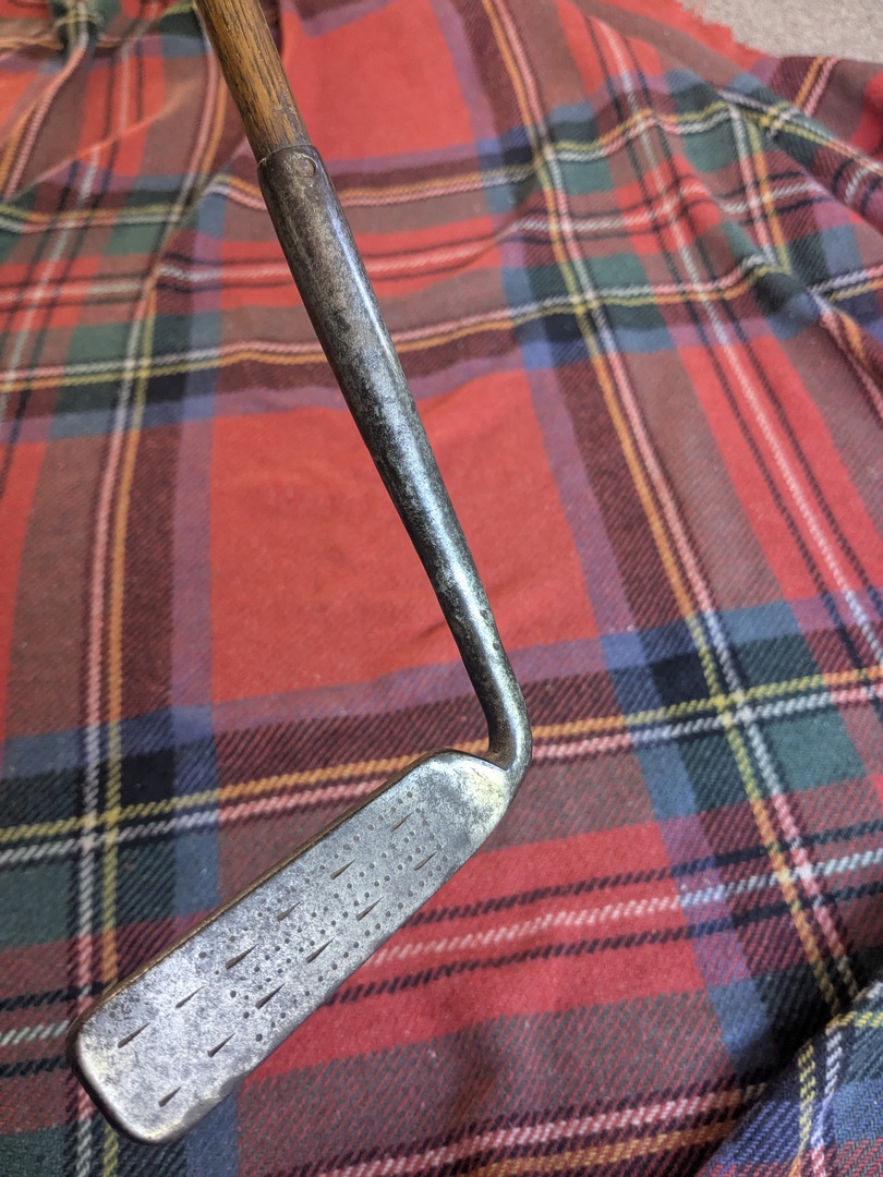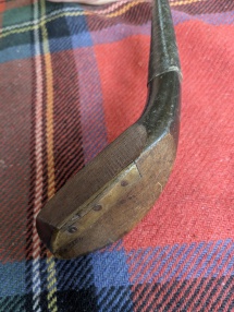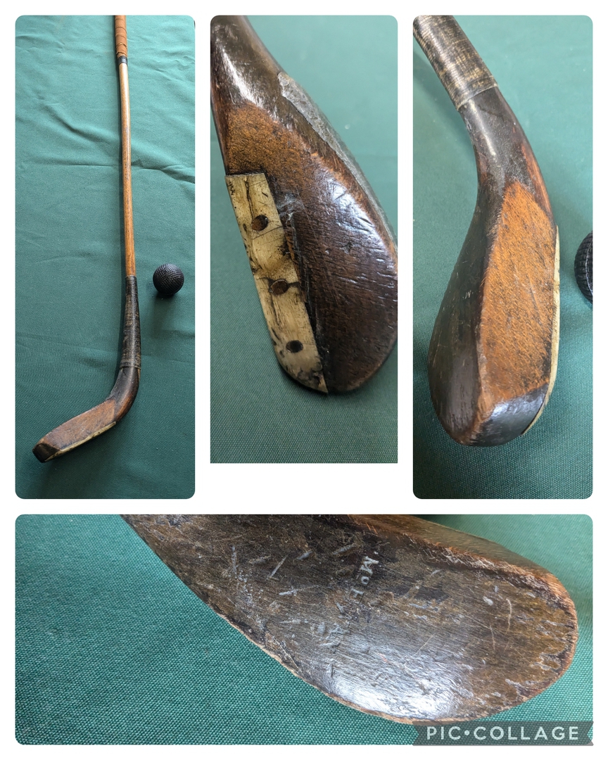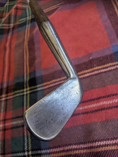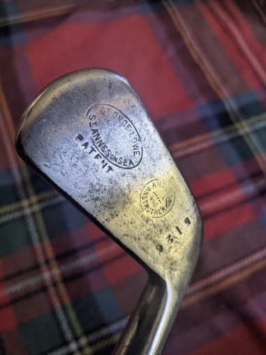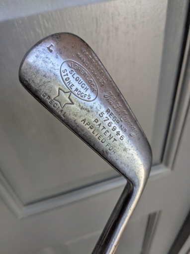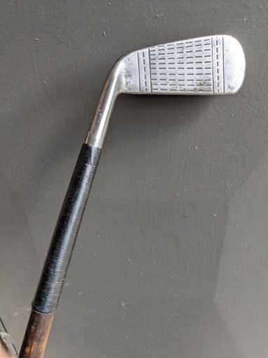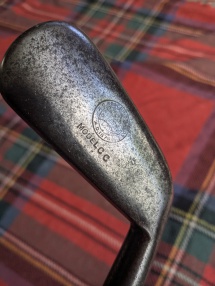 A rare Murray Patent Iron by Gibson. This was the only model of iron ever made that had a scared (splice) joint between the shaft and head. Only a handful of these clubs still exist. They date about 1910. This particular one is the only one I know of that has "patent applied for" stamped on the head...the other known examples have the patent number assigned after it was granted. So this is very likely the oldest known club of its type to exist in the world.